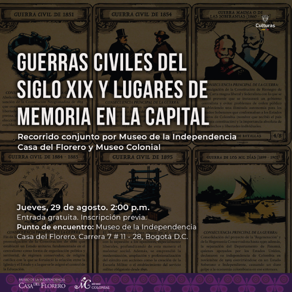 En este recorrido, conoceremos más sobre los acontecimientos de las guerras civiles en el siglo XIX en Colombia y visitaremos algunos lugares del Centro Histórico de Bogotá que nos permiten recordar las afectaciones que hubo por estas confrontaciones.