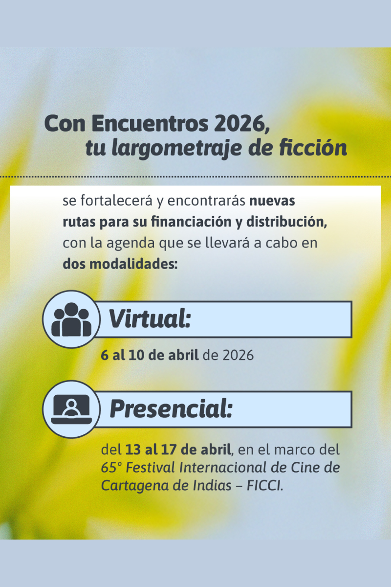 Se seleccionarán ocho (8) proyectos paracada Encuentro. Las actividades de Encuentros 2026 se realizarán en modalidad virtual del 6 al 10 de abril y presencial en el marco del