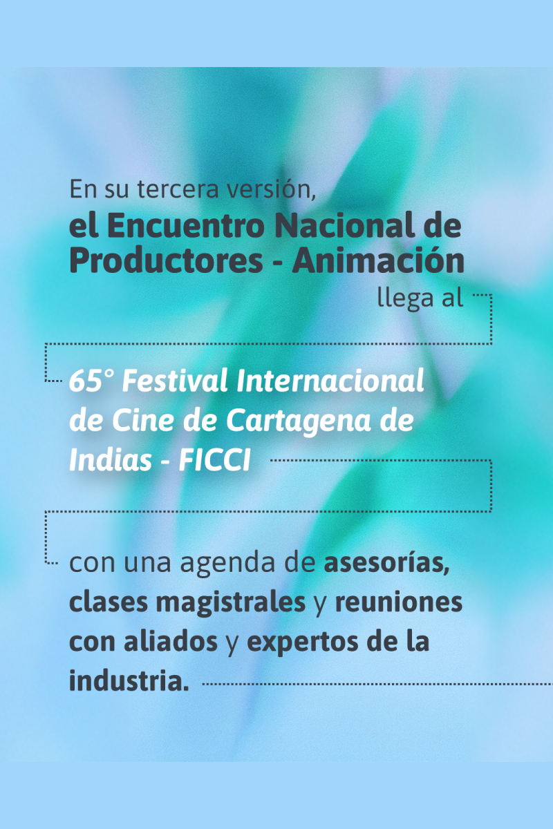 Para el Encuentro Nacional de Productores - Animación se convoca especialmente a proyectos dirigidos a público infantil, asegurando mínimo cuatro (4) cupos para su participación, siempre y cuando cumplan con el puntaje requerido en la evaluación de la convocatoria.