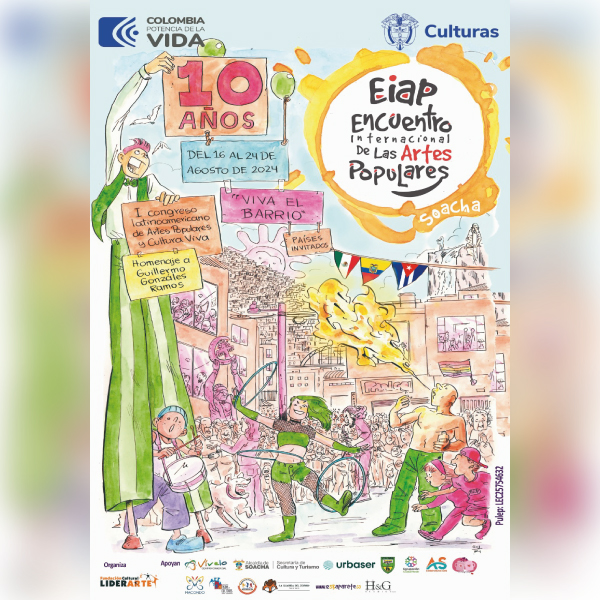 El X Encuentro Internacional de las Artes Populares Soacha “Viva el Barrio” - EIAP 2024 es un evento artístico y cultural que se divide en tres componentes: