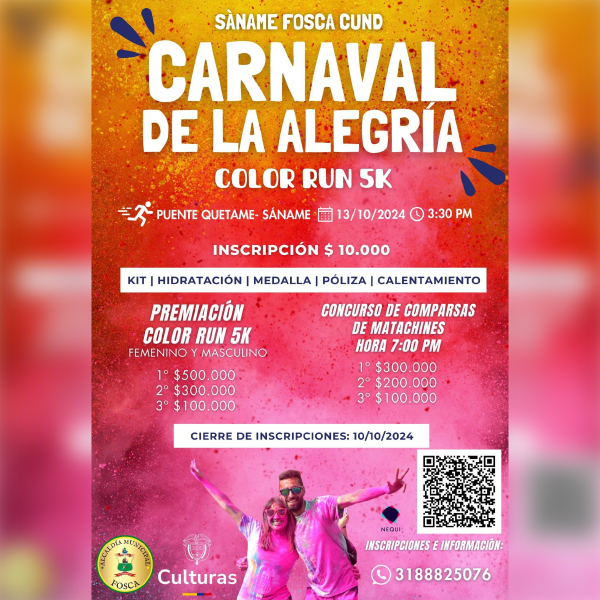Lugar: Polideportivo de la vereda. Puente Quetame km 47 vía Bogotá-Villavicencio, Fosca, Cundinamarca