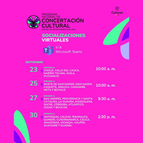 Te sugerimos revisar antes el Manual de Participación y preparar tus preguntas ✍️: https://concertacion.mincultura.gov.co/
