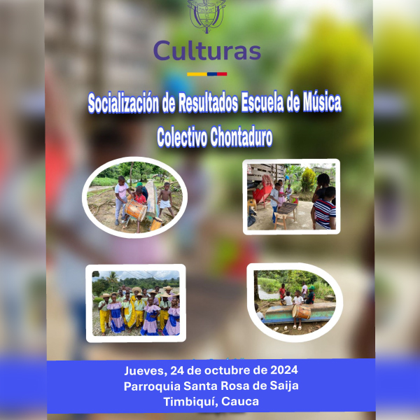 Se presentarán los resultados de los talleres impartidos a todos los beneficiarios, de la Escuela de Música Colectivo Chontaduro incluyendo presentaciones musicales y de danza de los distintos géneros musicales de la música folclórica del Pacífico.