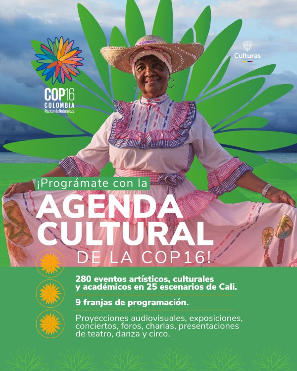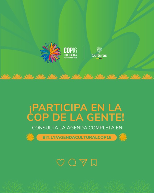 La agenda cultural y participativa de la COP16 es liderada por el Ministerio de las Culturas, las Artes y los Saberes de Colombia y es abierta al público.