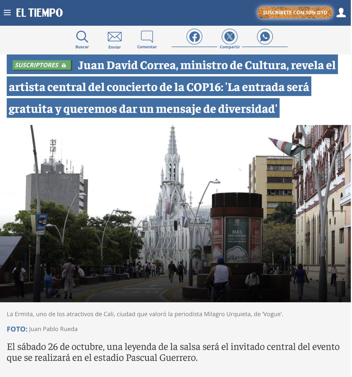 “El mundo entero va a estar mirando a Colombia y creemos que, a través de las culturas, las artes y los saberes, podemos dar cuenta de nuestra inmensa riqueza”.
