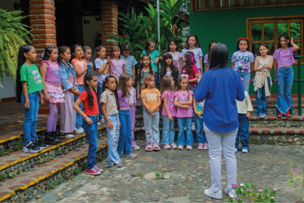 'La Coral' utiliza la música como herramienta para empoderar a niñas de territorios afectados por el conflicto, promoviendo la paz, el cuidado de la naturaleza y la prevención de la violencia sexual, a través de letras compuestas desde una perspectiva de género.
