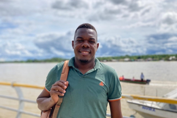 Juan Carlos es un hombre alto, delgado, con ojos soñadores, con una sonrisa característica de la gente del Chocó. Un hombre comprometido con su pueblo y territorio. Cuando empezó a darse cuenta de esta problemática, estaba en la universidad estudiando Biología con énfasis en recursos naturales y ahí se preguntó: “¿Cómo puedo aportar? ¿Qué puedo hacer?” Y comenzó a mirar cuál era el camino para acompañar procesos comunitarios.