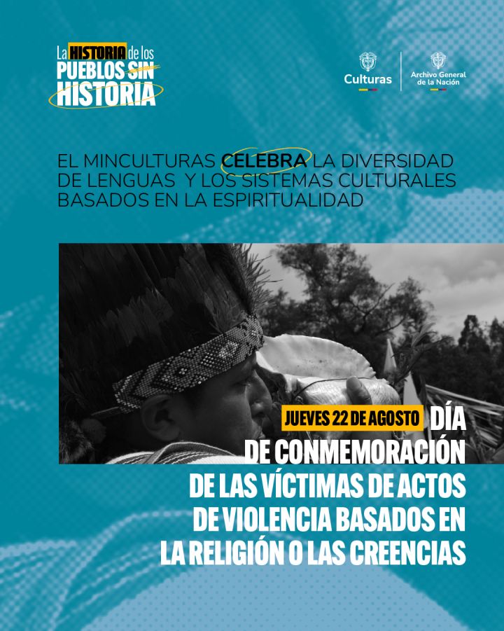 Este tercer encuentro de ‘La historia de los pueblos sin historia’ lo organizan la estrategia Cultura de Paz, la Dirección de Patrimonio y Memoria y la Dirección de Poblaciones del Ministerio de las Culturas, las Artes y los Saberes, en colaboración con el Archivo General de la Nación y el Instituto Colombiano de Antropología e Historia (ICANH). Además, hará parte de Día Internacional en Conmemoración de las Víctimas de Actos de Violencia Basados en la Religión o la Creencia, declarada por Naciones Unidas, que también incluye a otros pueblos indígenas del país que han sufrido rechazo o estigmatización a causa de su sistema de creencias.
