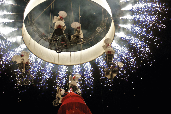 Además, dependiendo del espacio, se van ajustando ciertos elementos para darle más fluidez a la puesta en escena. “Por ejemplo, si tenemos una gran plaza, con muchas personas, el inicio toma más tiempo, porque vamos con las bicicletas entre público o tenemos un solo de un violinista que puede tocar un poco más y así podemos ajustar. También depende de la grúa y de qué tan grande es el espacio desde el que podemos hacer el despegue", finaliza la directora.