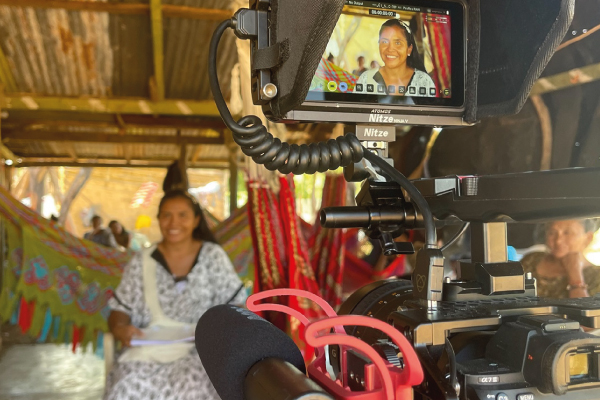 Este documental, que se gestó con las comunidades indígenas de La Guajira, integra a estudiantes de la Escuela de Comunicaciones Wayuu y a lideresas de diferentes rancherías. Por eso, para Carmela, este proyecto no solo es una película sino un ejercicio colaborativo que da valor a la sabiduría ancestral y a la voz colectiva de las mujeres a través del cine.