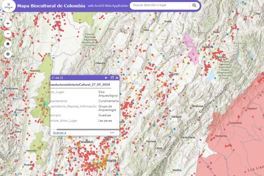 Este mapa presenta en un geovisor interactivo aspectos de la diversidad biocultural y amenazas a esta. Su realización la lideraron Javier Rodríguez, Mateo Villegas y la antropóloga e historiadora Patricia Vargas Sarmiento, del Comité Consultor del Minculturas y de su Dirección de Estrategia, Desarrollo y Emprendimiento.