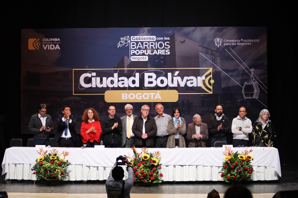 La primera parada fue el Teatro El Ensueño, en Ciudad Bolívar, al sur de Bogotá, que comenzó con las presentaciones de varios grupos artísticos locales. Allí, el ministro de las Culturas, las Artes y los Saberes, Juan David Correa, anunció las acciones que su cartera ha tenido y tendrá en Bogotá. La inversión total para Bogotá será de $145.000 millones.