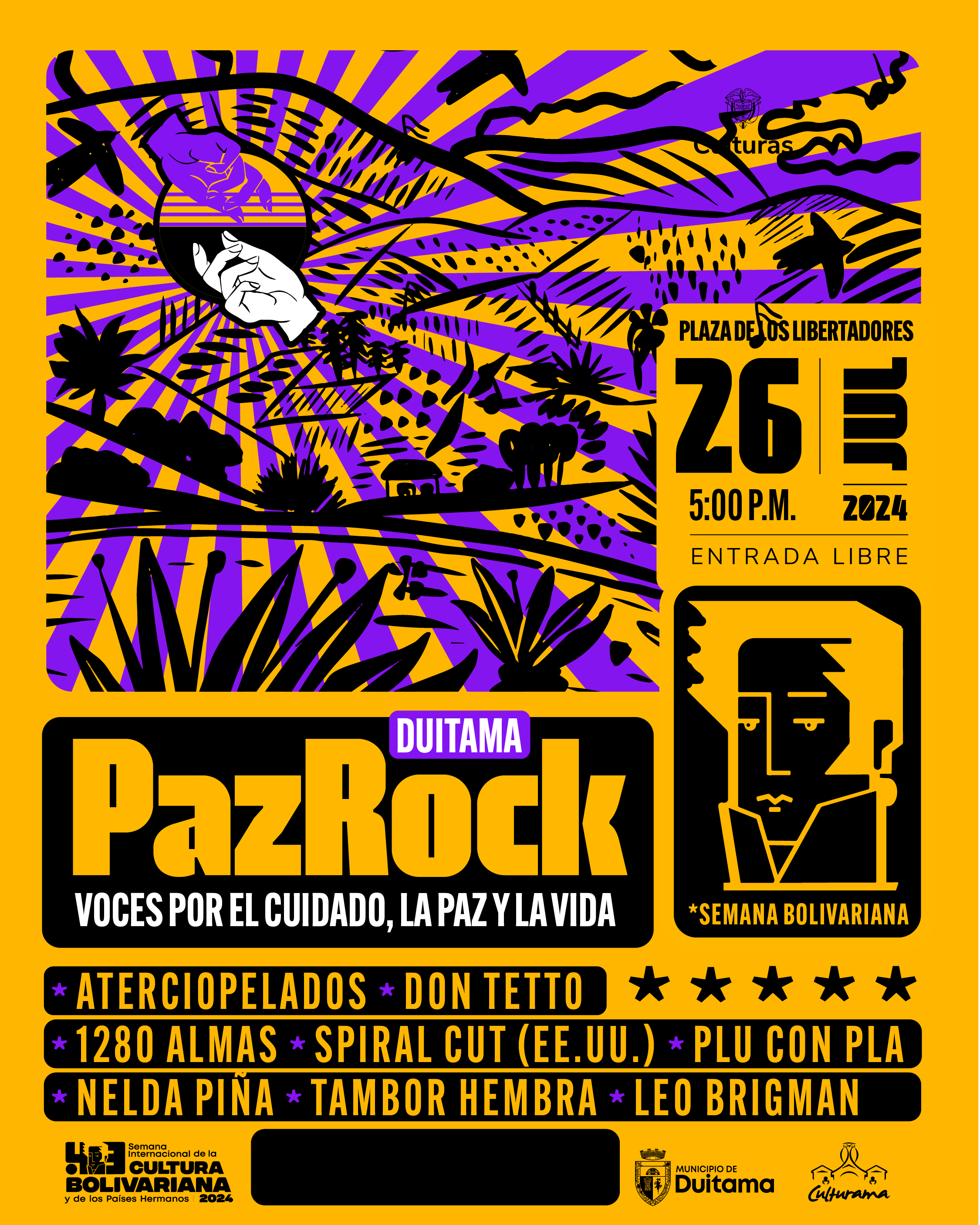 - Esta edición de PazRock es organizada por la Alcaldía de Duitama y el Ministerio de las Culturas, las Artes y los Saberes, y se realiza en el marco de la versión 43 de la Semana Internacional de la Cultura Bolivariana y de los Países Hermanos, que se enfoca en los territorios de paz.