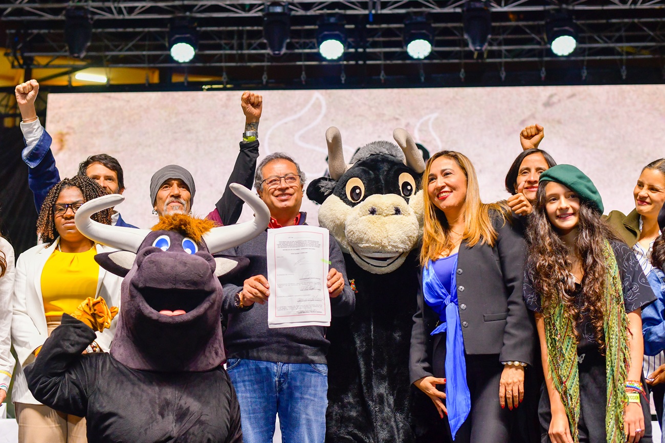 Bogotá, Colombia, 22 de julio de 2024. Este lunes, el presidente de la República, Gustavo Petro Urrego, sancionó La Ley 'No más Olé': “Por medio de la cual se aporta a una transformación cultural mediante la prohibición de las corridas de toros, rejoneo, novilladas, becerradas y tientas, así como de los procedimientos utilizados en estos espectáculos que socavan la integridad de formas de vida no humana".