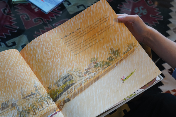 Hoy ya invierto recursos de Lazo para ir a investigar. Para 'Chocó' fui a Quibdó con Geraldine Ramírez, la ilustradora, a entrevistar a la autora, Velia Vidal. Estuvimos tres días recorriendo el río Atrato, haciendo talleres con niños de la fundación de promoción de lectura que tiene Velia y entendiendo su relación con el agua. Fuimos al mercado, probamos frutas, sentimos la humedad, vimos las champas (embarcaciones artesanales) del Atrato, cómo nacían los yarumos, dónde estaban, qué aves había, y absorbimos todo para luego empezar a aterrizar el libro entre las tres.
