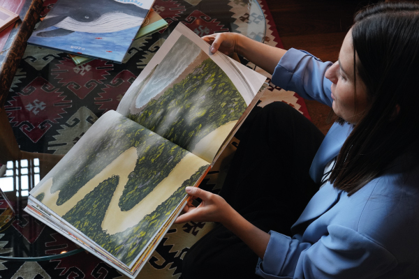 Llegar al color preciso para que los libros sean informativos desde lo visual responde, según Guerra, a una investigación que nace de sus viajes y experiencias propias, pero sigue en sus talleres creativos, donde buscan más referentes. “Crean una paleta de colores para cada libro, hacen un mapa de color, un story board a color y yo, como editora, la directora de arte e incluso el escritor o escritora botamos ideas para definir entre todos cuáles colores funcionan y cuáles no”, explica. “Pero también nos damos permisos. En ‘El vuelo de las jorobadas’ la ballena sale azul a veces y, evidentemente, no es un animal azul. Son licencias que nos damos desde la no ficción y la ficción, aunque buscamos ser fieles en la mayoría de los casos”.