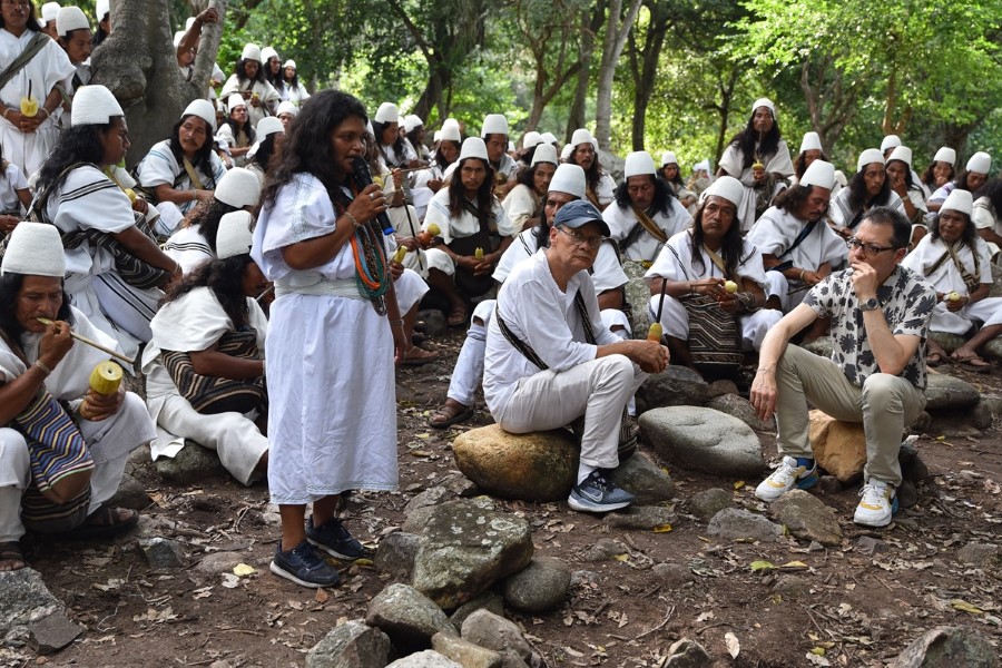 Gun Aruwun (Valledupar), 15 de septiembre de 2024 (@mincultura). En el Kadukwu Mechachun en Gun Aruwun -corregimiento de Sabana Crespo de la ciudad de Valledupar-, más de 500 arhuacos recibieron al minculturas, Juan David Correa. Mamos, lideresas y líderes de este pueblo originario solicitaron espacios de diálogo para seguir luchando por la protección del llamado ‘Corazón del mundo’.