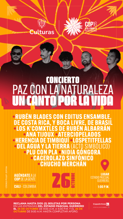 Si vives en Cali, eres turista o haces parte de alguna de las 196 delegaciones invitadas a la cumbre más importante sobre la biodiversidad del planeta, la Conferencia de las Partes (COP16), esto es lo que tienes que saber para asistir a este concierto: