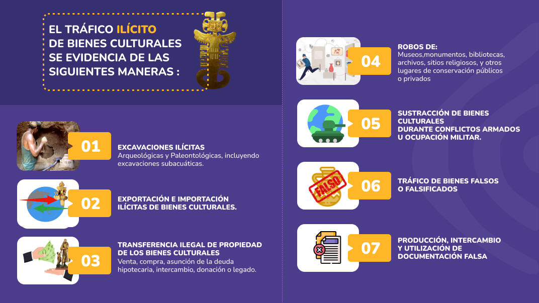 Por destrucción, daño, utilización ilícita, hurto o receptación de bienes materiales de interés cultural, o por su explotación ilegal.